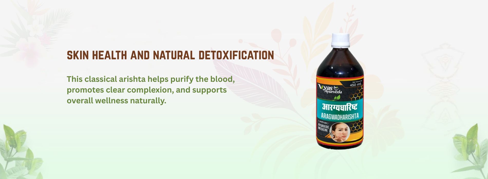 Traditional Ayurvedic arishta formulation made with Aragwadha (Cassia fistula) to support holistic skin health