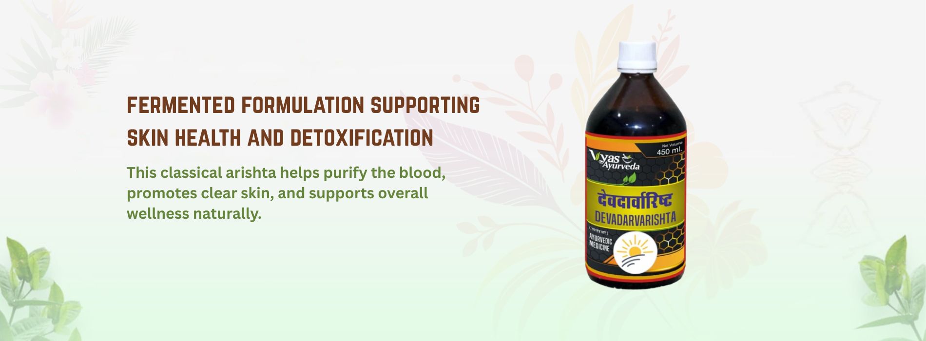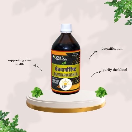 Classical Ayurvedic arishta prepared with Devadaru and other potent herbs to nurture overall skin and systemic wellness