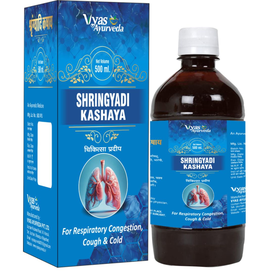 Take the recommended dose of Shringyadi Kashay as advised by your physician, diluted in warm water.